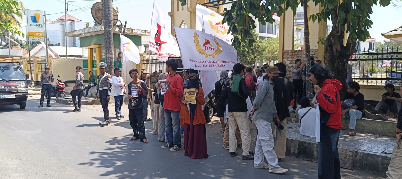 Puluhan massa dari kelompok Barisan Masyarakat Indonesia (BMI) menggelar aksi unjuk rasa damai di Kantor DPRD dan Kantor Pemda Kabupaten Dompu. Aksi dimulai pukul 10.00 Wita dengan jumlah massa sekitar 25 orang, dipimpin oleh Sdr. Eko Ardiansyah.