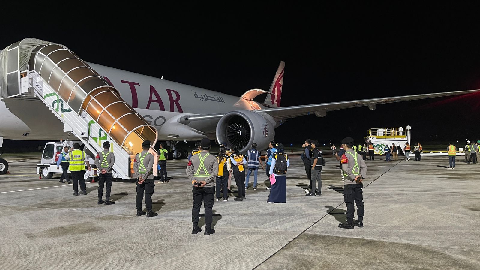 Sementara itu itu untuk logistik tahap II tiba Dini Hari pukul 00.30 Wita menggunakan Pesawat kargo kedua, Qatar Airways QTR 8356 (rute NRT-LOP), mendarat di BIZAM.