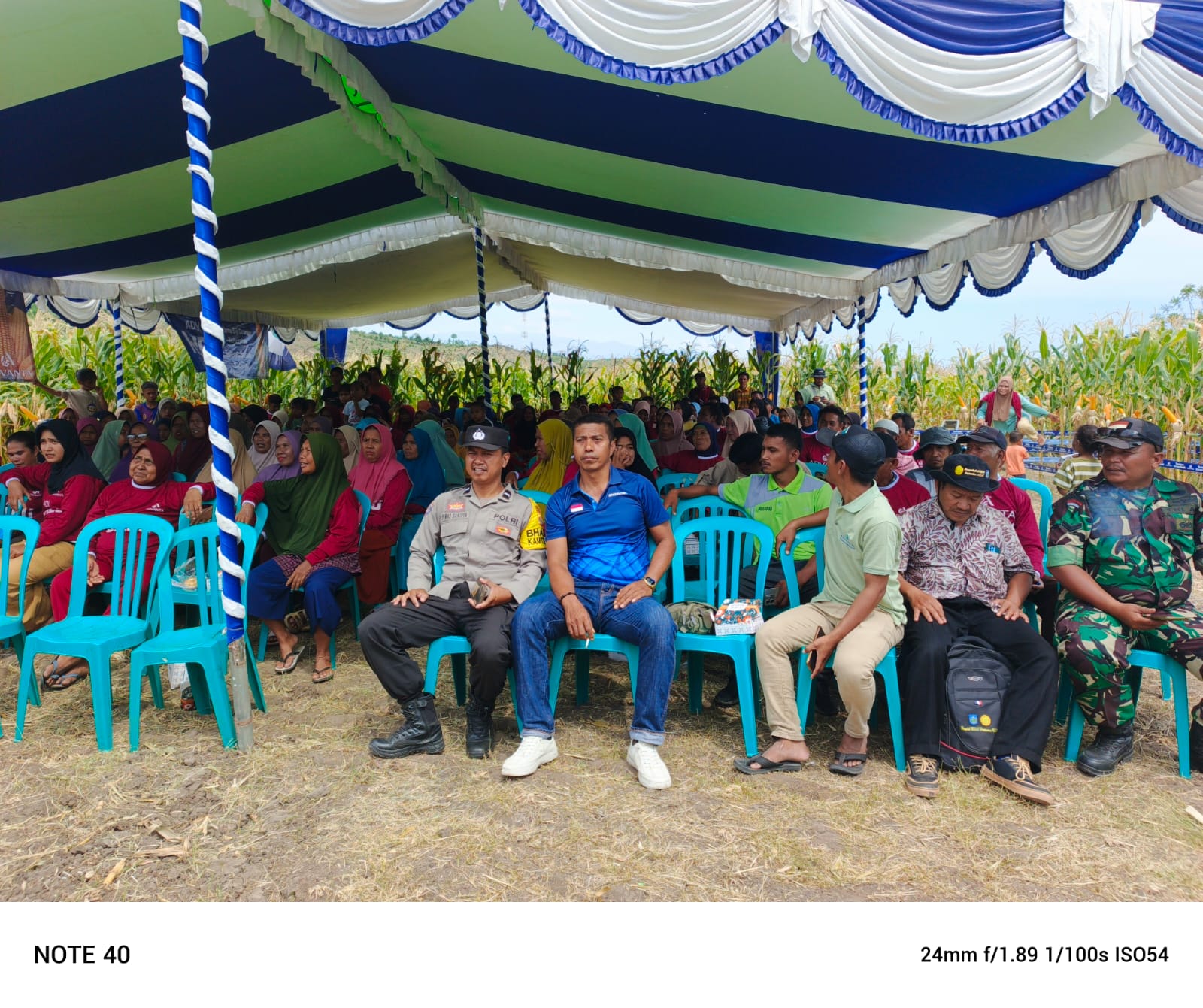 Dalam upaya mendukung peningkatan produktivitas pertanian dan ketahanan pangan, Bhabinkamtibmas Desa Mbuju Polsek Kilo Aipda Dimas Sanjaya menghadiri kegiatan Panen Raya Jagung yang diselenggarakan oleh PT Advanta, Kamis (09/10/2025) pukul 08.30 Wita bertempat di lahan jagung milik Bapak Nasarudin, Dusun Mbuju, Desa Mbuju, Kecamatan Kilo, Kabupaten Dompu.