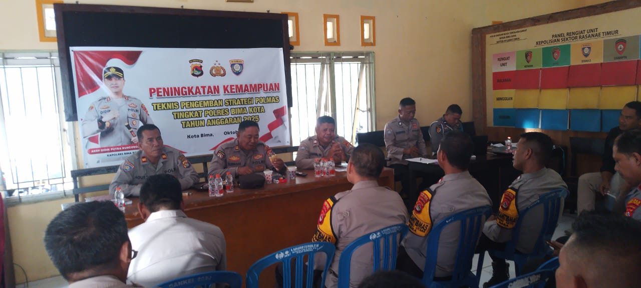 Kota Bima, 23 Oktober 2025 – Dalam rangka meningkatkan profesionalisme dan kapasitas personel Bhabinkamtibmas dalam mengemban tugas di tengah masyarakat, Polres Bima Kota menggelar kegiatan Peningkatan Kemampuan Teknis Pengemban Strategi Polmas Tingkat Polres Bima Kota Tahun 2025, yang dilaksanakan pada Kamis (23/10/2025) pukul 09.00 Wita bertempat di Aula Polsek Rasanae Timur.