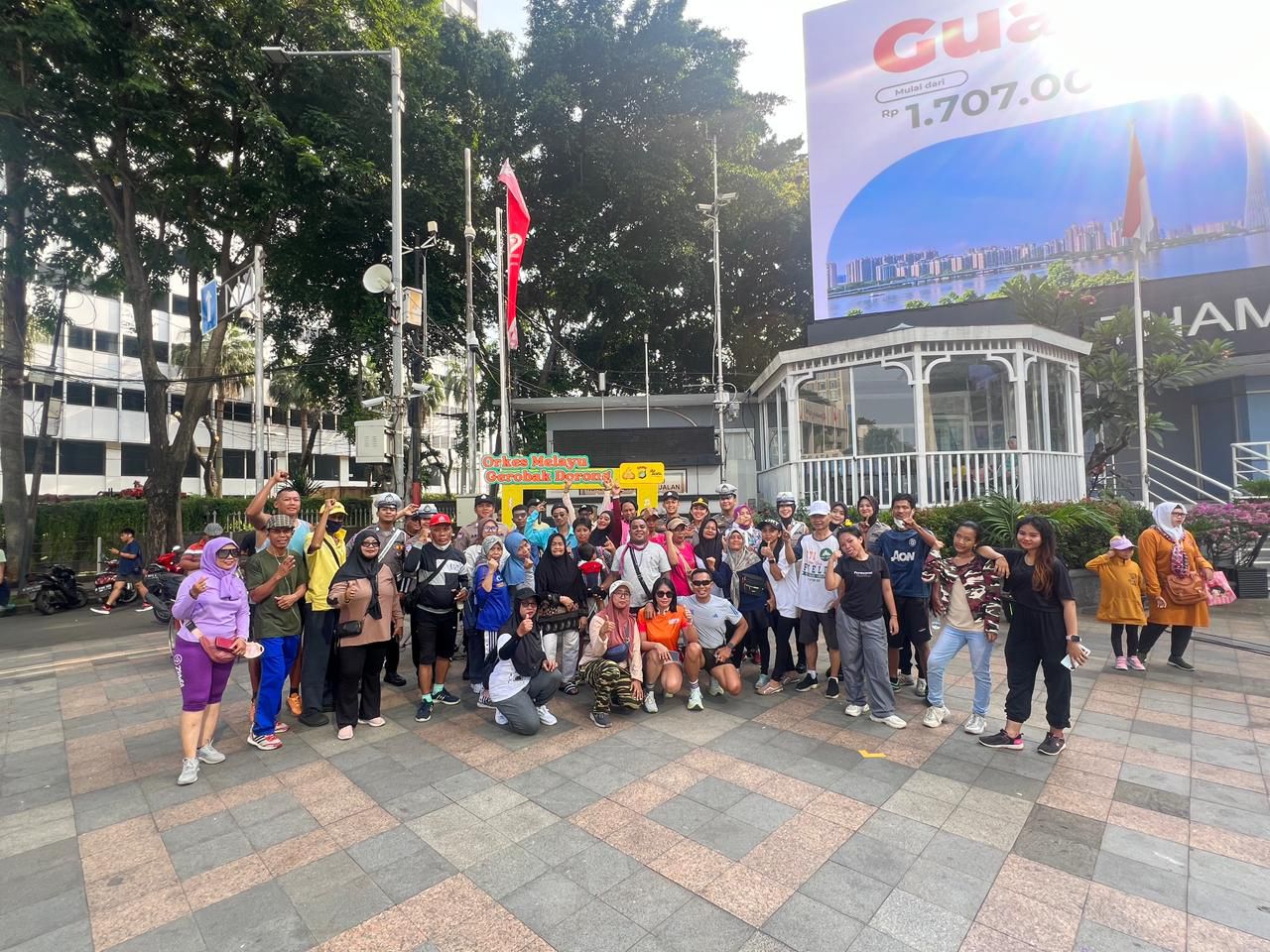 Jakarta – Suasana Car Free Day (CFD) di kawasan Bundaran Hotel Indonesia, Jakarta Pusat, Minggu (02/11/ 2025) pagi, terlihat lebih meriah dari biasanya. Hiburan musik jalanan bertajuk Orkes Melayu Gerobak Dorong sukses menarik perhatian warga yang tengah berolahraga di area bebas kendaraan tersebut.