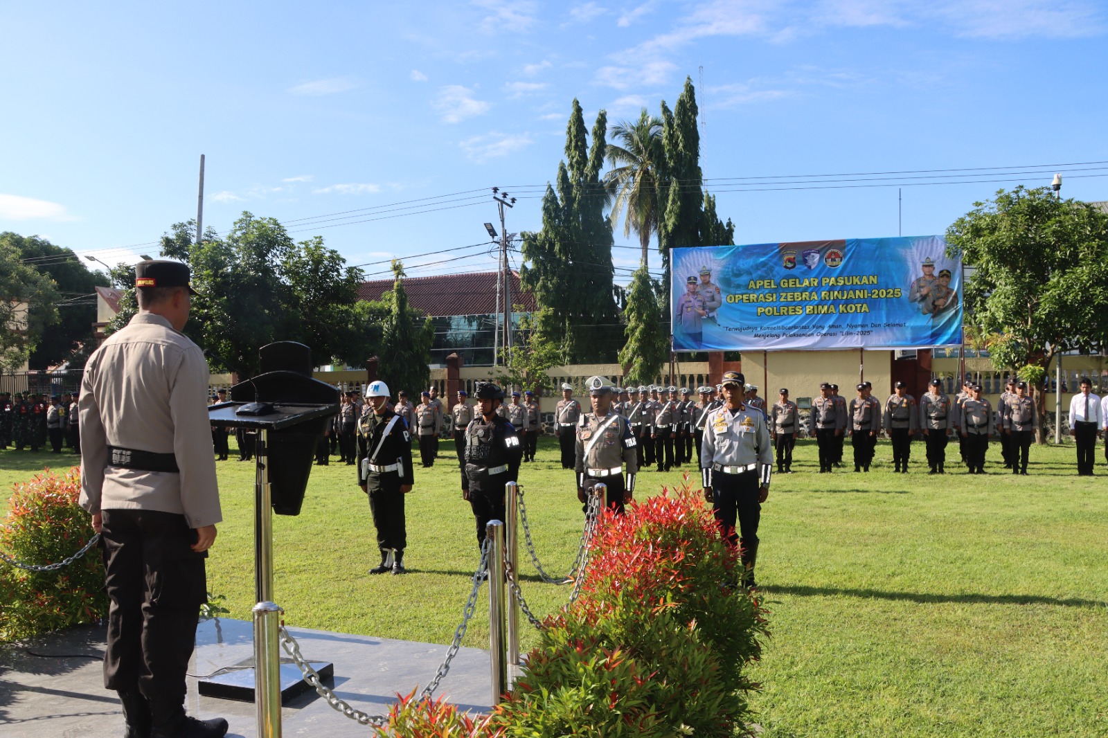 Kota Bima, NTB (17 November 2025) – Operasi Zebra Rinjani 2025 resmi digelar serentak di seluruh Indonesia mulai hari ini. Polres Bima Kota melaksanakan Apel Gelar Pasukan pada Senin, 17 November 2025, pukul 08.00 Wita, bertempat di Lapangan Presisi Polres Bima Kota. Kegiatan tersebut dipimpin langsung oleh Wakapolres Bima Kota, Kompol Herman, S.H., sekaligus menandai dimulainya operasi terpusat yang akan berlangsung selama 14 hari.