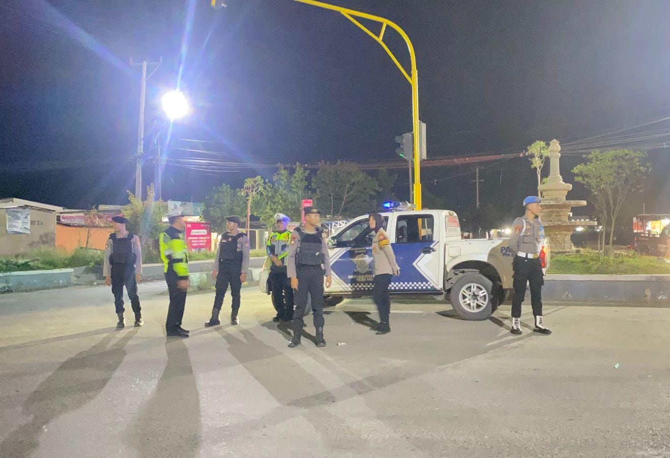 Patroli yang dimulai sejak pukul 23.00. Wita itu menyasar sejumlah tempat keramaian dan titik rawan seperti simpang empat Talabiu dan pertigaan patung kuda Desa Panda.
