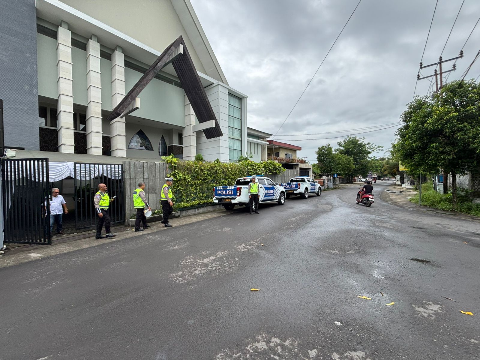 Selain melakukan penjagaan di sekitar area ibadah, personel Satgas Kamseltibcar Lantas juga aktif mengatur arus kendaraan di depan gereja, membantu penyeberangan jemaat, serta mengantisipasi potensi gangguan lalu lintas yang dapat menghambat aktivitas ibadah.