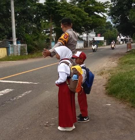 Dalam pelaksanaannya, Bhabinkamtibmas membantu menyeberangkan para pelajar yang hendak masuk sekolah serta mengatur arus lalu lintas agar tetap tertib dan lancar.