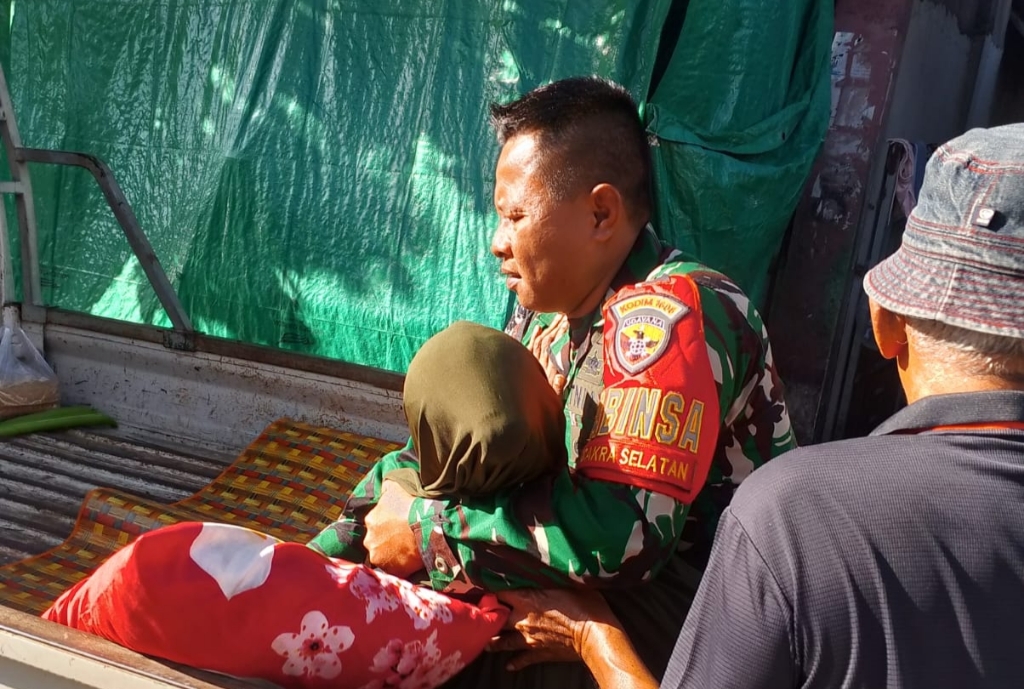 Karena kondisi Ibu Harsiah tidak memungkinkan untuk berjalan, Babinsa bersama warga berupaya mencari kendaraan roda empat agar proses evakuasi menuju lokasi terapi di Desa Montong Are dapat berjalan aman dan nyaman. Setelah kendaraan diperoleh, proses pengantaran dilakukan dengan penuh kehati-hatian.