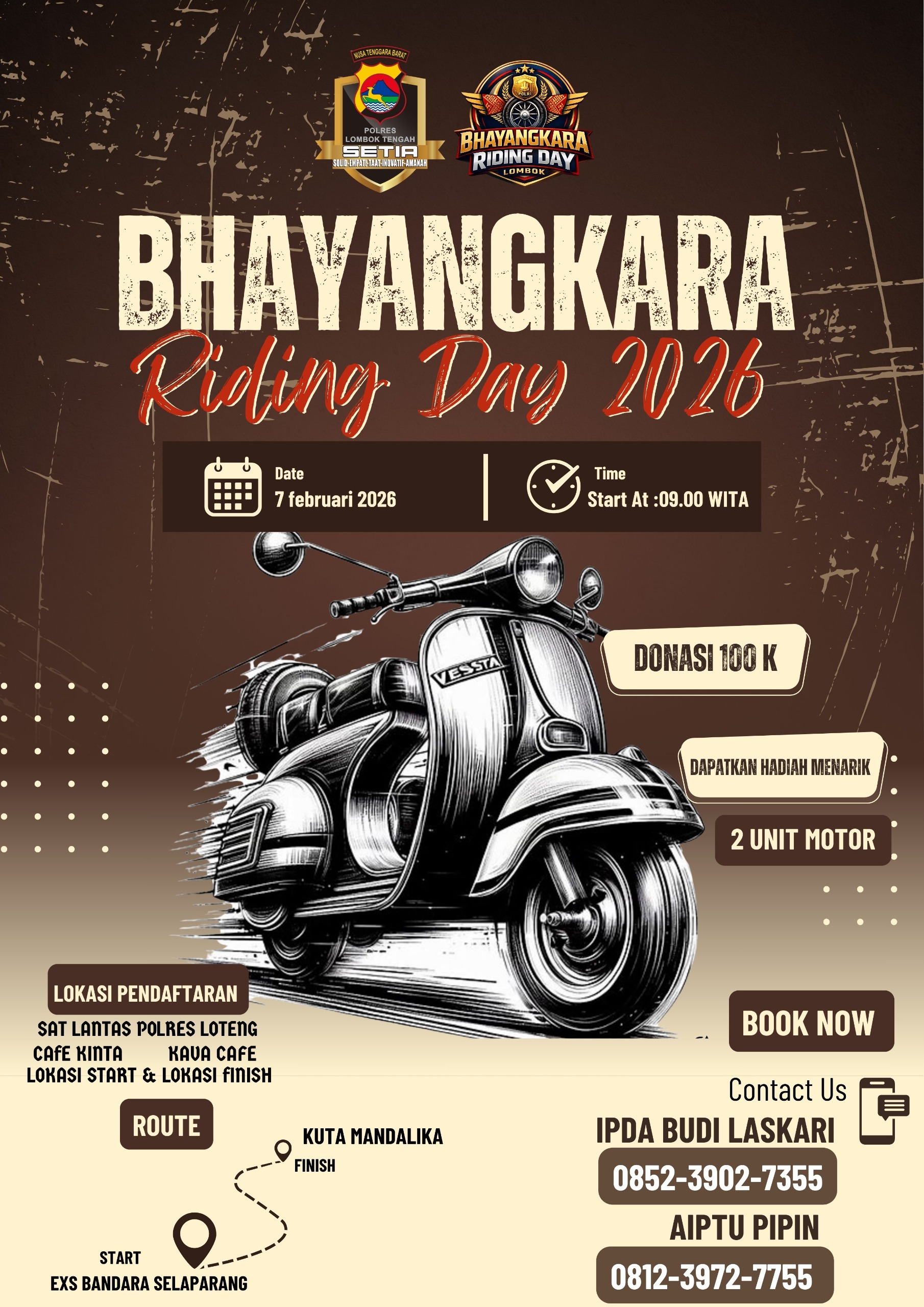 ‎‎Lombok Tengah – Polres Lombok Tengah menggelar Bhayangkara Riding Day 2026 yang akan berlangsung pada Sabtu, 7 Februari 2026, sebagai bagian dari upaya menyemarakkan Festival Bau Nyale sekaligus mempererat silaturahmi antara Polri, komunitas motor, dan masyarakat.