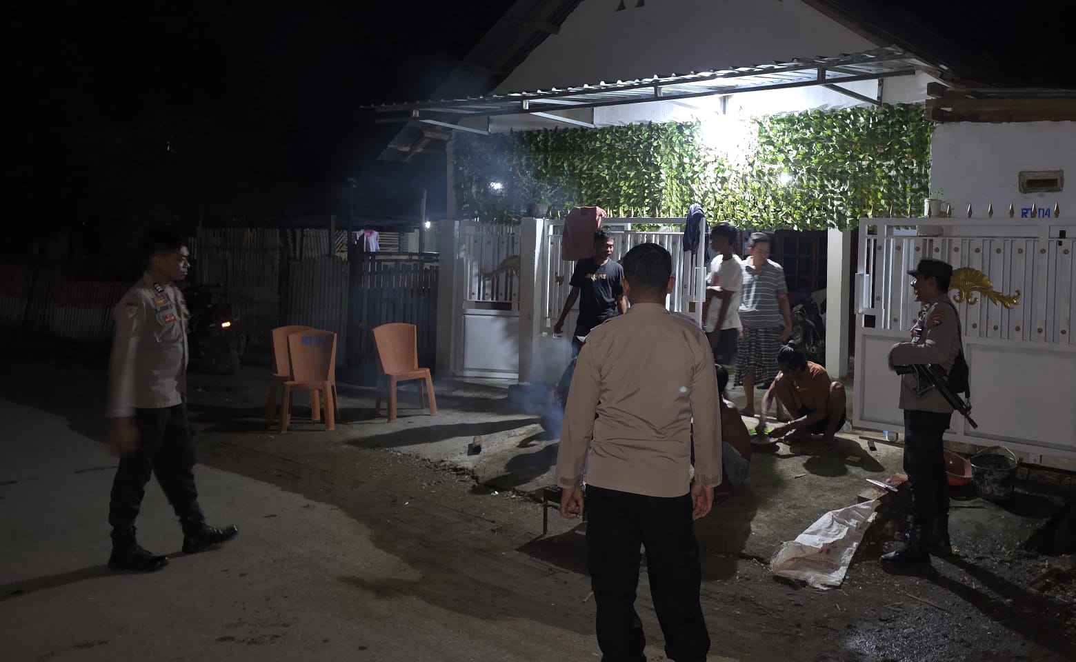 Patroli yang dimulai sejak pukul 21.00.Wita yang diawaki oleh tiga orang personel dan dikendalikan oleh Kapolseknya AKP Sudarto SH menyisir beberapa desa dan titik yang dianggap rawan.