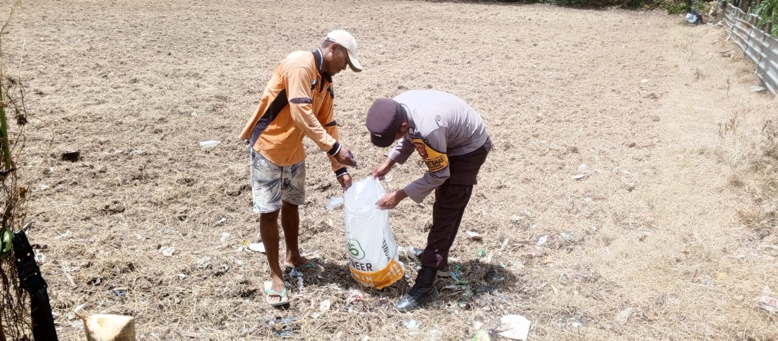 Dalam kegiatan itu, Brigadir Kamaludin menyerahkan 10 kampet bibit jagung jenis Pioner yang ditanam di lahan seluas 1 hektare milik anggota Kelompok Tani Lang Pasir. Kehadiran Bhabinkamtibmas tidak hanya sebatas penyaluran bantuan, namun juga memberikan motivasi dan pendampingan kepada petani agar tetap semangat dalam bercocok tanam.