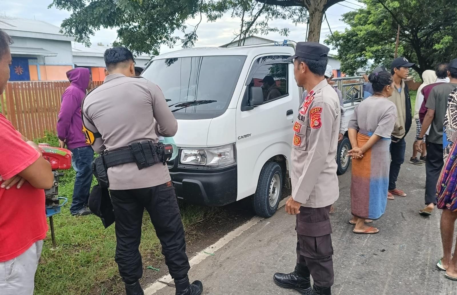 Personel Polsek Madapangga Polres Bima Polda NTB bantu evakuasi korban kecelakaan lalulintas di Lintas Bima Dompu, tepatnya di depan Bulog Desa Bolo Kecamatan Madapangga Rabu (07/02/26) sekira pukul 07.30. Wita.