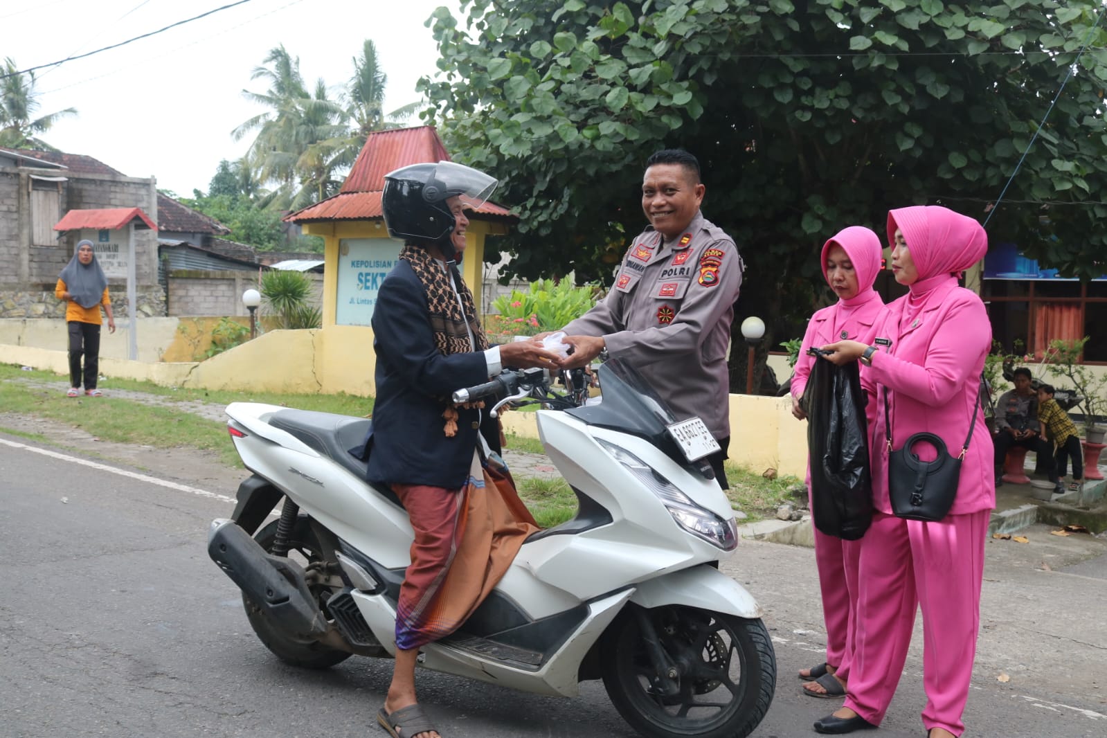 Kegiatan tersebut berlangsung pada Sabtu (28/3/2026) sekitar pukul 16.20 Wita di Jalan Raya depan Mako Polsek Woja. Kegiatan dipimpin langsung oleh Kapolsek Woja, IPTU Muh. Norkurniawan, S.H., bersama Ketua Bhayangkari Ranting Polsek Woja Ny. Siti Daniar, S.Pt., serta diikuti oleh anggota Polsek Woja dan Bhayangkari.