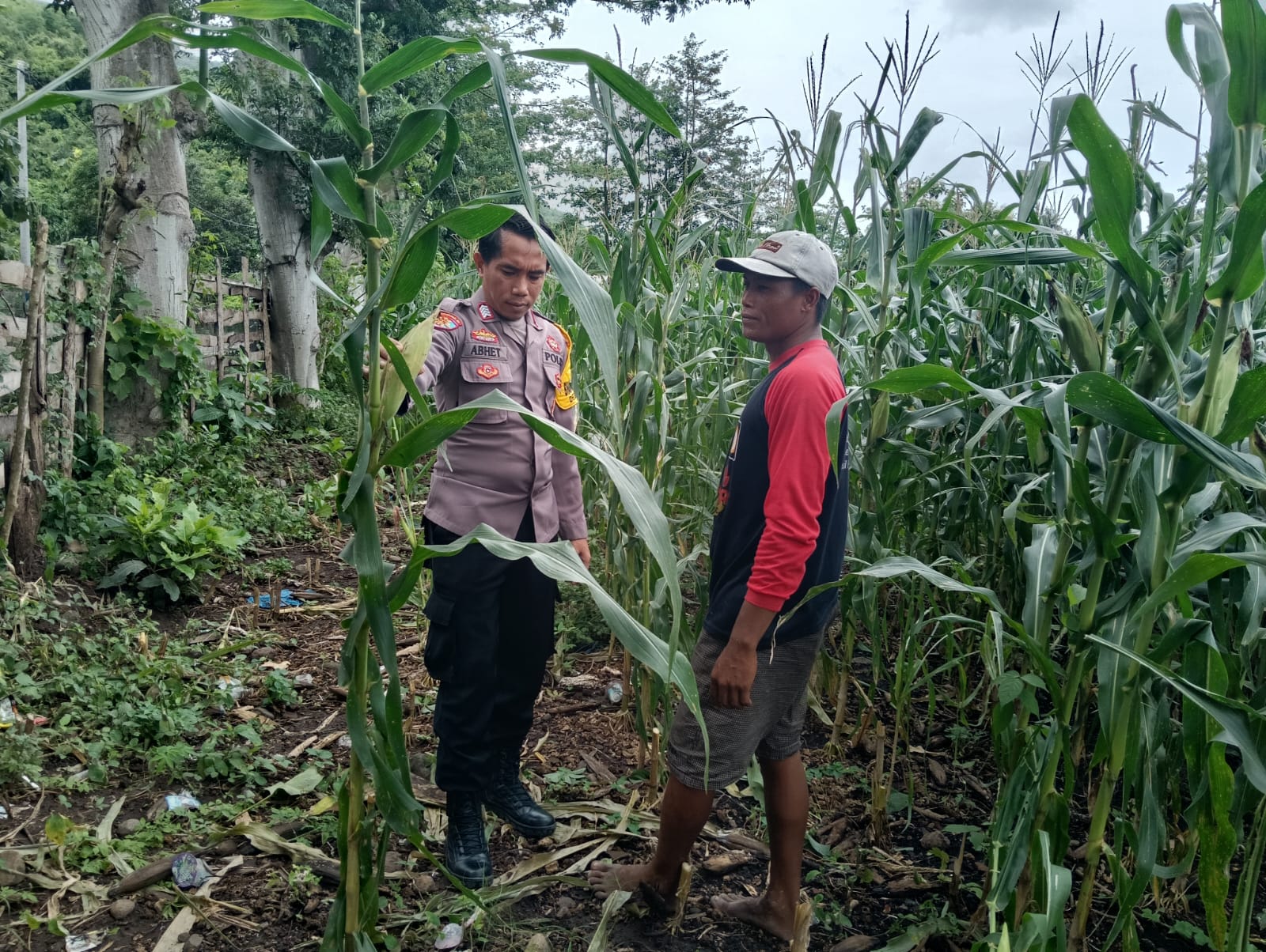 Judul: Dukung Ketahanan Pangan Nasional, Bhabinkamtibmas Polsek Kempo Pantau Lahan Jagung Warga di Desa Konte