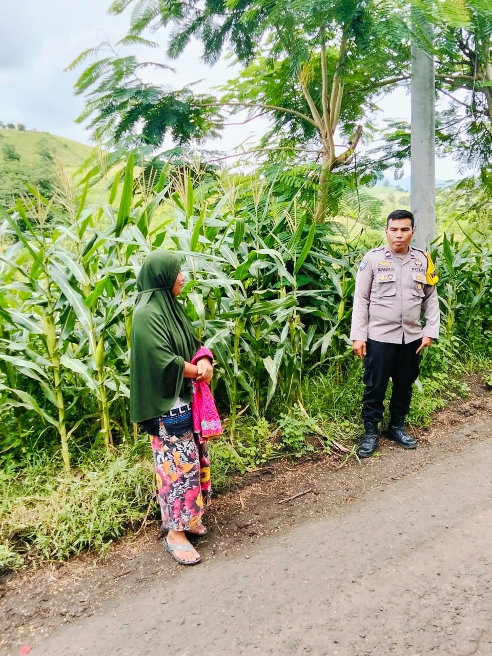 Dalam rangka mendukung Program Ketahanan Pangan Nasional menuju Indonesia Emas 2045, Bhabinkamtibmas Desa Matua Polsek Woja melaksanakan pemantauan lahan jagung milik warga binaan di Dusun Selaparang Barat, Desa Matua, Kecamatan Woja, Kabupaten Dompu, Kamis (5/3/2026) sekitar pukul 16.30 Wita.