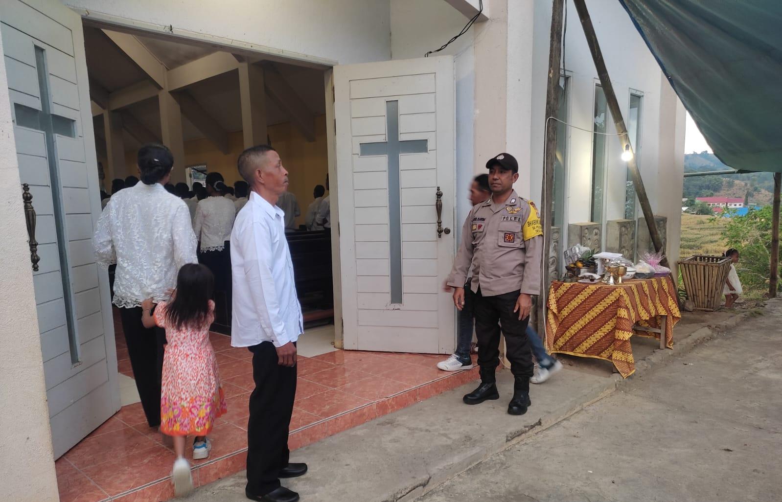 Dalam rangka memberikan rasa aman dan nyaman kepada umat Kristiani yang melaksanakan ibadah Kamis Putih, Polsek Donggo Polres Bima Kabupaten Polda NTB melaksanakan pengamanan kegiatan peribadatan di Gereja Santo Paulus
