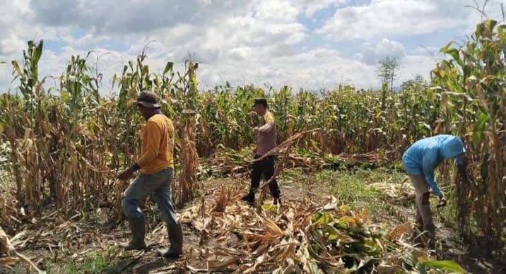Dalam rangka mendukung Program Ketahanan Pangan Nasional menuju Indonesia Emas 2045, Bhabinkamtibmas Desa Mumbu Polsek Woja, BRIGADIR Akbar, melaksanakan kegiatan pemantauan lahan jagung milik warga binaannya yang sedang memasuki masa panen.
