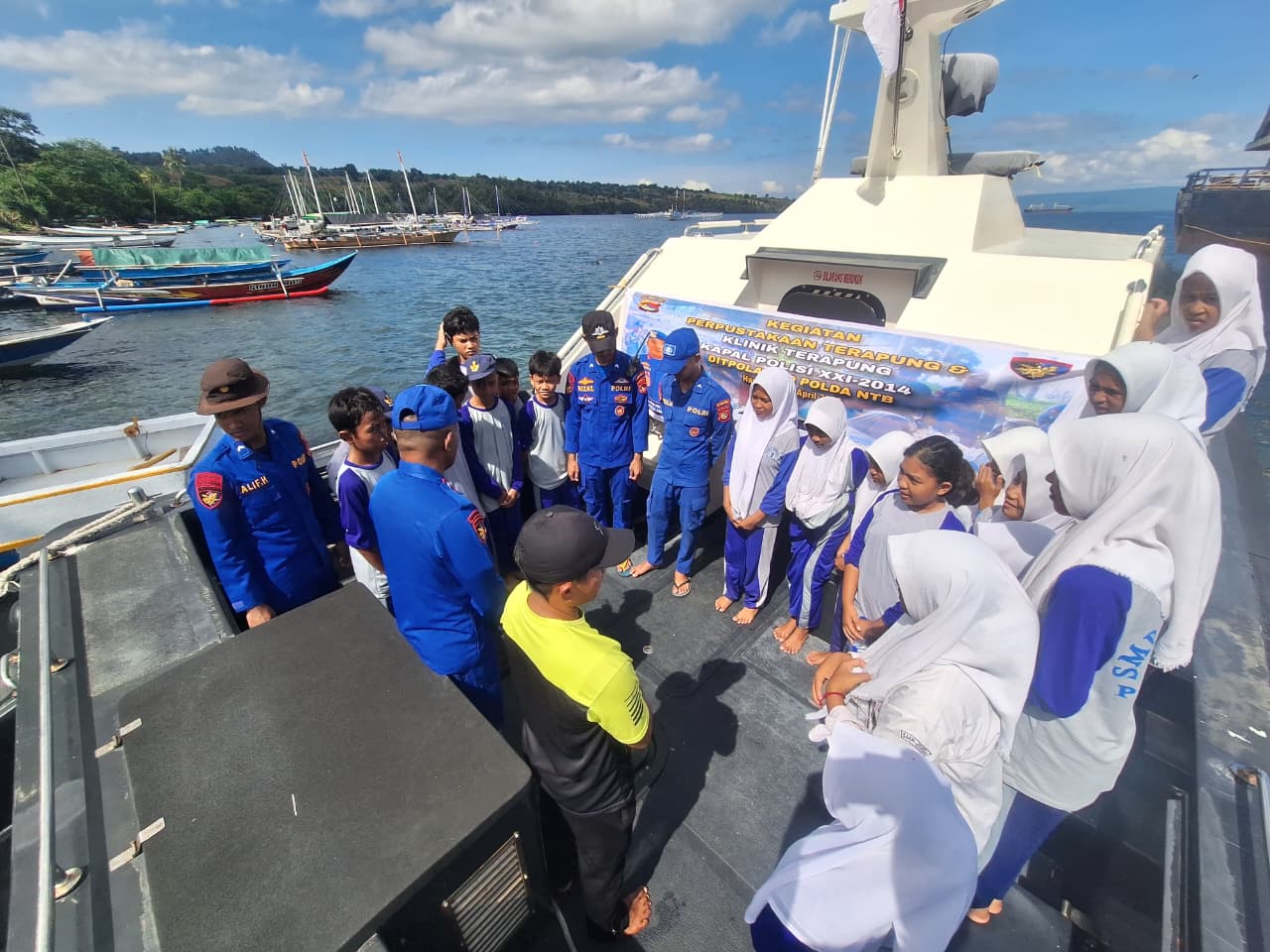 Dompu, Rabu 22 April 2026 – Direktorat Kepolisian Perairan dan Udara (Ditpolairud) Polda Nusa Tenggara Barat (NTB) kembali menunjukkan komitmennya dalam memberikan pelayanan terbaik kepada masyarakat melalui kegiatan Perpustakaan dan Klinik Terapung yang dilaksanakan di wilayah perairan Calabai, Kabupaten Dompu.
